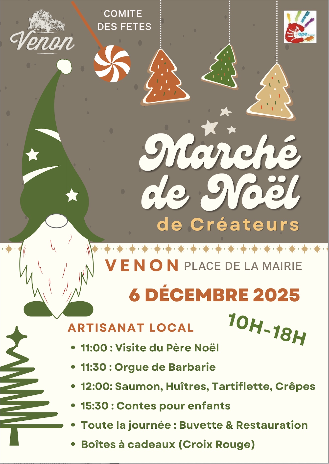 Cette année le comité des fêtes et l’APE auront le plaisir de vous accueillir au marché de Noël : Samedi 6 Décembre
