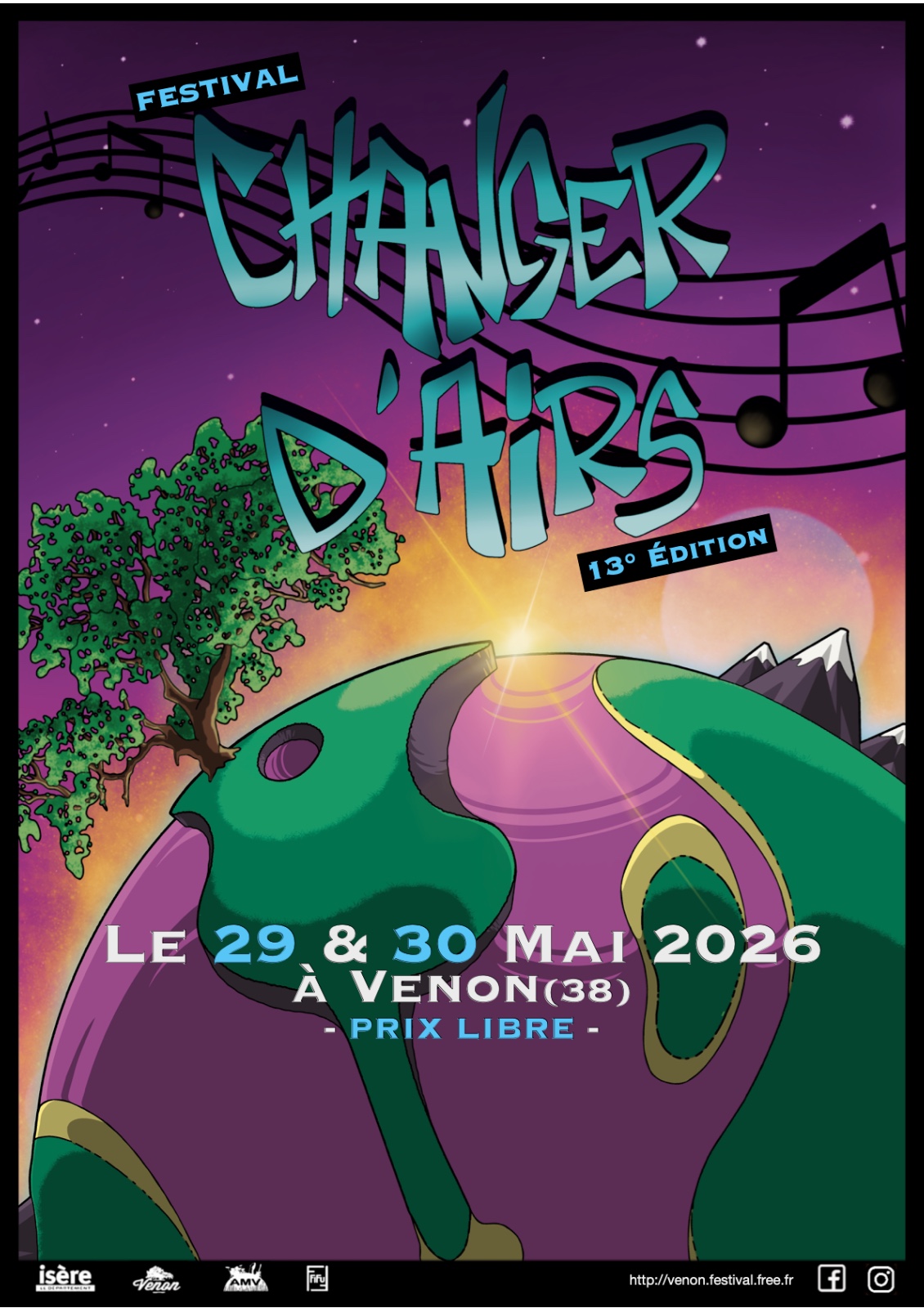 Le festival « Changer d’Airs » est prévu les 29 mai & 30 mai 2026 à Venon. Comme d’habitude, le prix est libre pour l’entrée pour cette 13 eme édition