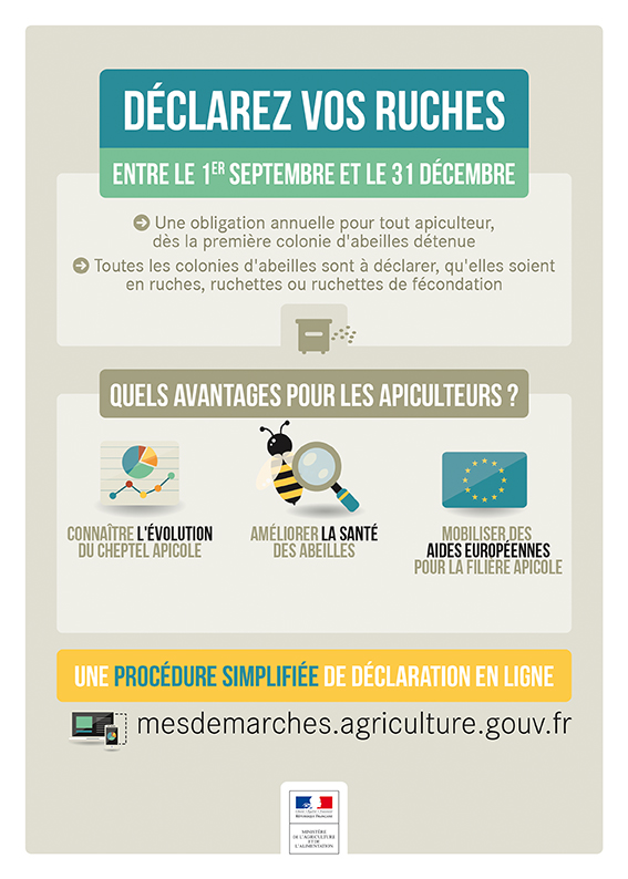 Des informations complémentaires concernant la déclaration de ruches sont disponibles sur le site : http://mesdemarches.agriculture.gouv.fr.